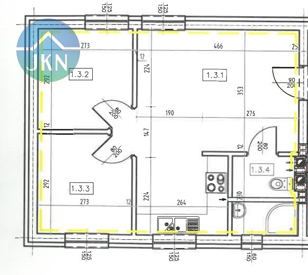 1 pokój Powierzchnia: 34,00 m2