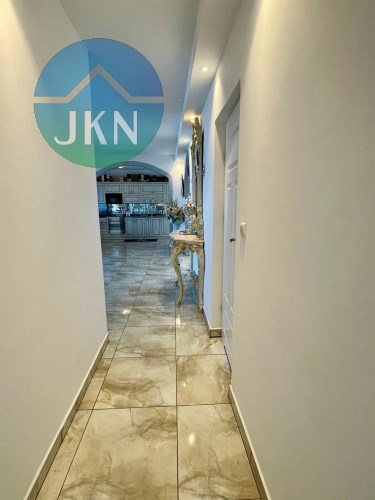 - Parter: kuchnia częściowo otwarta połączona z salonem, jadalnią i dużym holem z wyjściem na taras, 2 sypialnie, łazienka, garderoba, kotłownia oraz garaż