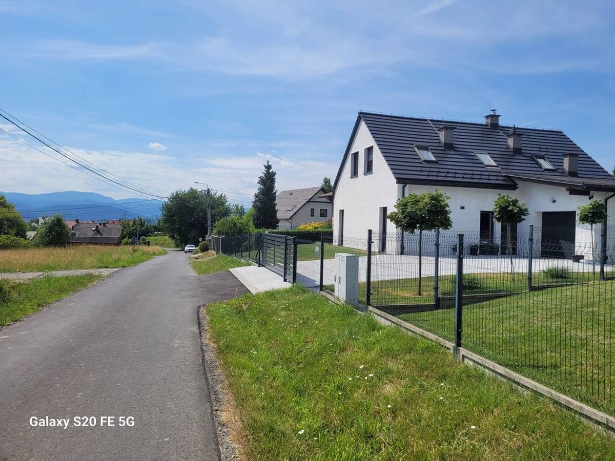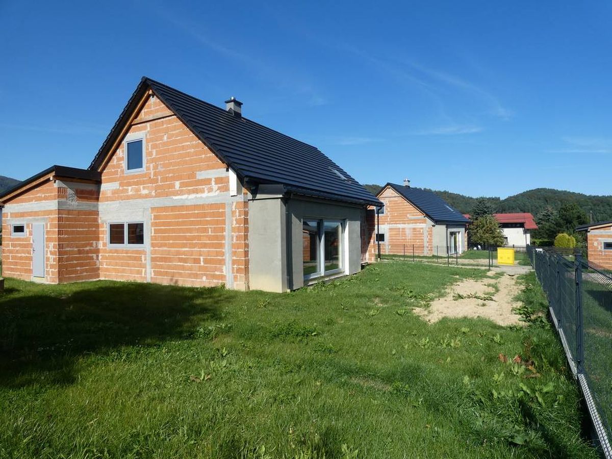 Po uzyskaniu w lipcu 2019 r. pozwolenia na budowę, rozpoczęliśmy w sierpniu 2019 r. prace budowlane. Jako wykonawcę zatrudniliśmy zaprzyjaźnioną firmę Roberta Wiśniowskiego z Łodygowic. Domy murowane z pustaków ceramicznych pokryte zostały płaską dachówką ceramiczną. Ze względu na ograniczony budżet wybudowaliśmy budynki do stanu surowego zamkniętego. Równocześnie doprowadziliśmy do budynków wszystkie sieci: elektryczną, wodociągową, kanalizacyjną i gazową. Doprowadzenie sieci wymagało zgody kilku sąsiadów. Jeden sąsiad zgodził się na gaz, drugi na prąd, trzeci na wodę pozostali na poprowadzenie sieci przez ich działki. Kanalizację mieliśmy na działce. Kiedy budynki były gotowe do sprzedaży, pojawiła się epidemia COVID. Byliśmy bardzo zaniepokojeni, jak wpłynie to na możliwość sprzedaży. Okazało się, że ten wpływ był pozytywny.