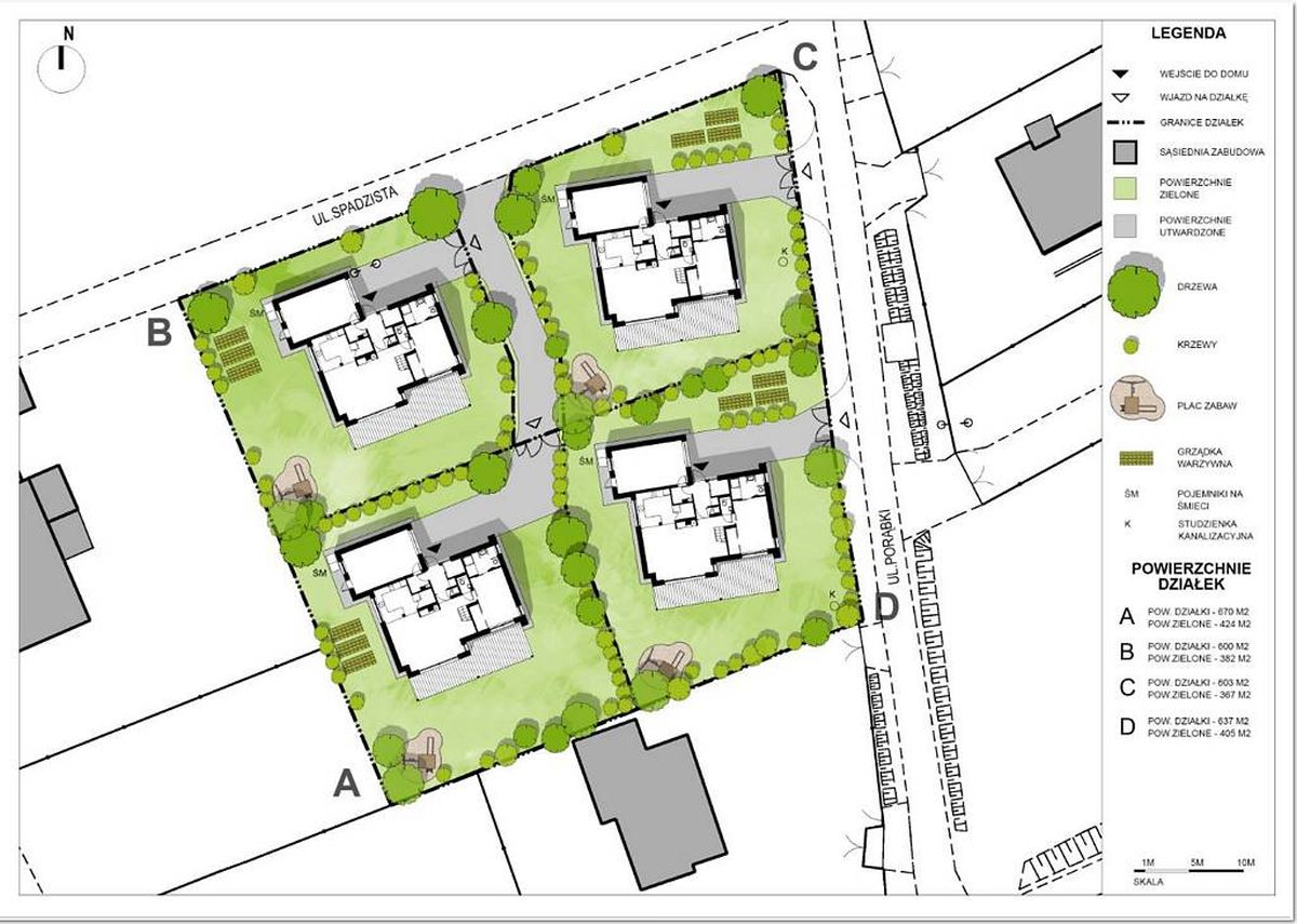 Zmieniliśmy pierwotną koncepcję i zaprojektowaliśmy mini osiedle złożone z 4 domów. Jeden z domów budowała córka Ela – inżynier budownictwa, pozostałe 3 budowałem sam w ramach prowadzonej działalności gospodarczej. Koncepcję budynków i zagospodarowania działki przygotowała nam młodsza córka Magda, która jest architektem z międzynarodowym doświadczeniem. Zaprojektowane domy nie były typowymi domami jakie budowali wówczas deweloperzy. Są to nowoczesne domy z salonem otwartym pod dach. Parter budynków dostosowany jest do potrzeb osób poruszających się na wózku inwalidzkim.
