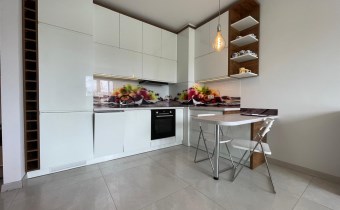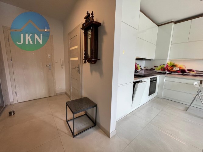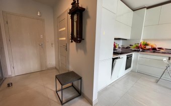 - salon z aneksem kuchennym i wyjściem na balkon od strony południowej, sypialnia, łazienka z kabiną prysznicową, przedpokój z dużą szafą zabudowaną