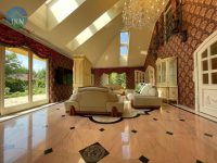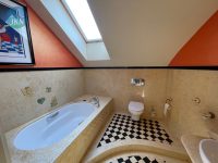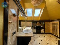 - PIĘTRO: hall z kanapą i wyjściem na górny taras, sypialnia z własną łazienką i garderobą, duża sypialnia z 2 balkonami i olbrzymią garderobą, połączona z dużą łazienka z wanną i deszczownicą do której jest też wejście z korytarza, pokój rekreacyjny ze stołem bilardowym