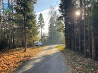 Teren działki równy, otoczony drzewami z trzech stron, w tym również od strony ulicy. W sąsiedztwie znajduje się jeden dom zamieszkiwany sezonowo, natomiast po drugiej stronie ulicy płynie potok. Działka nie ogrodzona.