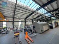 - Instalacje: Rozprowadzona instalacja sprężonego powietrza, LAN oraz instalacja elektryczna 400 V we floorboxach