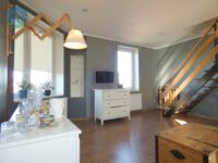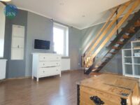 Mieszkanie znajduje się w wolnostojącym budynku na pierwszym piętrze plus poddasze. W budynku tylko trzy mieszkania.
