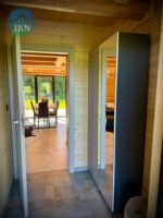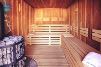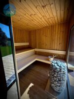 Na terenie obiektu znajduje się nowoczesna strefa SPA i relaksu, obejmująca saunę oraz jacuzzi, wykonaną z najwyższej jakości materiałów odpornych na warunki atmosferyczne i promieniowanie UV. Sauna została wykończona termodrewnem oraz drewnem egzotycznym abachi, wyposażona w piec elektryczny Huum Hive Mini o mocy 9 kW, stylowe oświetlenie LED oraz przesuwne drzwi ze szkła hartowanego. Strefa relaksu posiada podłogi i sufity z termo drewna oraz eleganckie lamele, co nadaje całości nowoczesny i luksusowy charakter.