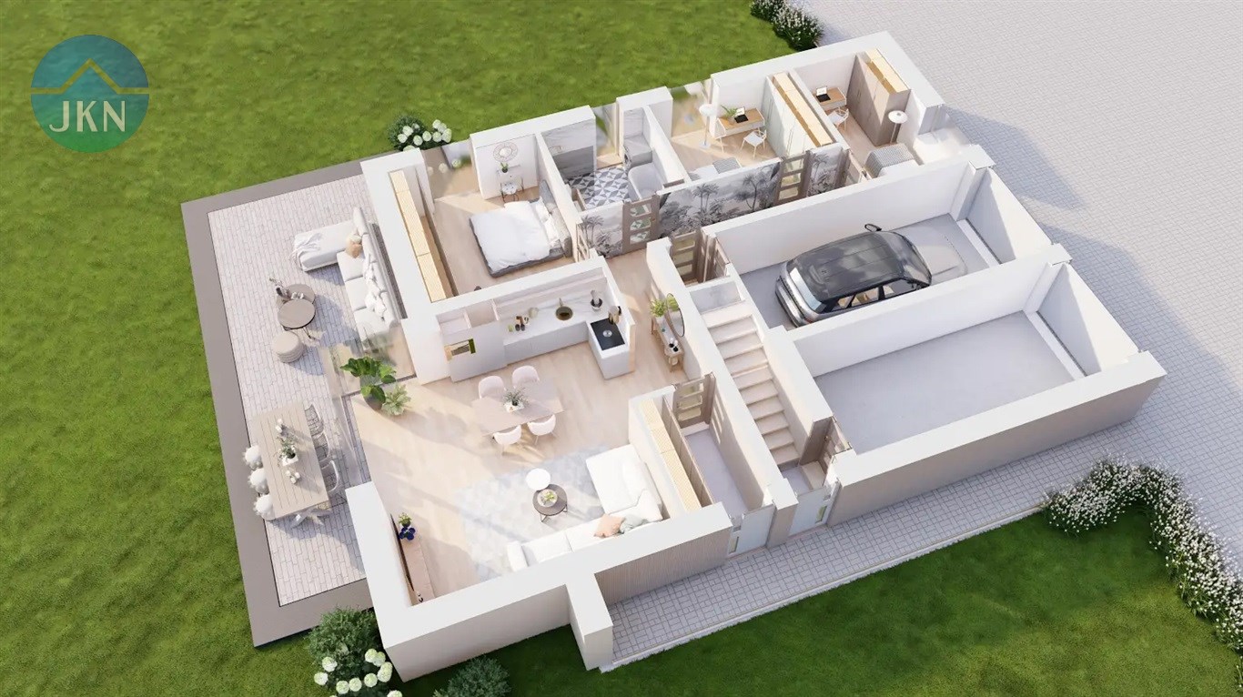 3 pokoje Powierzchnia domu: 55,00 m2 Powierzchnia działki: 914,00 m2
